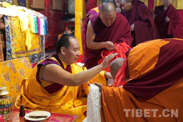 中國(guó)西藏網(wǎng)訊 11月4日,即藏歷九月二十二日是藏傳佛教傳統(tǒng)的“降神節(jié)”,降神節(jié)藏語稱“拉波堆慶”。在這特殊的日子里,全國(guó)政協(xié)常委、中國(guó)佛教協(xié)會(huì)副會(huì)長(zhǎng)、中國(guó)佛協(xié)西藏分會(huì)會(huì)長(zhǎng)班禪額爾德尼·確吉杰布,為日喀則市江孜縣重孜寺生欽·旦巴熱杰活佛授予比丘戒暨為扎什倫布寺部分年輕僧人傳授沙彌戒儀式在扎什倫布寺拉讓殿舉行。