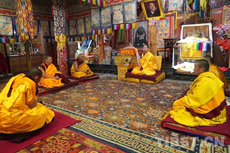 圖為班禪與僧眾誦經(jīng) 攝影:王淑