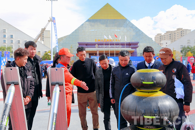 圖為啟動(dòng)儀式現(xiàn)場(chǎng)拉薩消防指戰(zhàn)員向市民介紹高精尖裝備器材