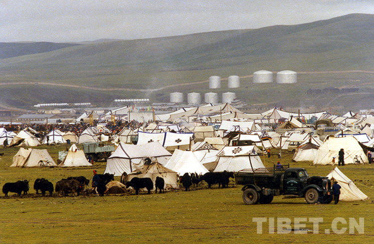 在那曲賽馬盛會上,臨時搭建起的帳篷城(唐召明1987年攝)