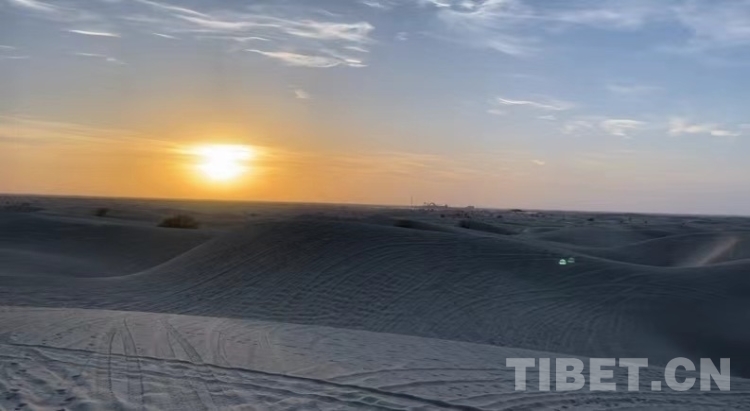 與沙漠落日相遇這一刻,用照片定格下來。從此對“大漠孤煙直,長河落日圓”的意境有了實感,我們記住了這獨特的美麗,也記住了沙漠邊的人們擁有著莫大的生活熱情。