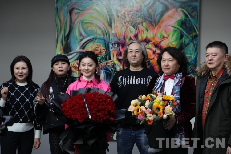 圖為開(kāi)幕式上趙文靜(左三)與朋友合影 攝影:登真巴珍