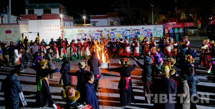 “村晚”演出結(jié)束后,演職人員和觀眾們前往社區(qū)廣場(chǎng)圍著篝火,跳起了歡快的果諧?,F(xiàn)場(chǎng),來自全國(guó)各地的游客熱情參與“村晚”活動(dòng)中,勾畫出民族團(tuán)結(jié)的美好畫面。