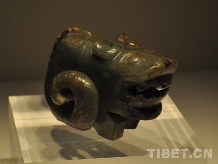 圖為安陽殷墟婦好墓出土商代玉熊龍:包括熊頭蛇身加新生的蘑菇狀鹿角。攝于首都博物館早期中國特展