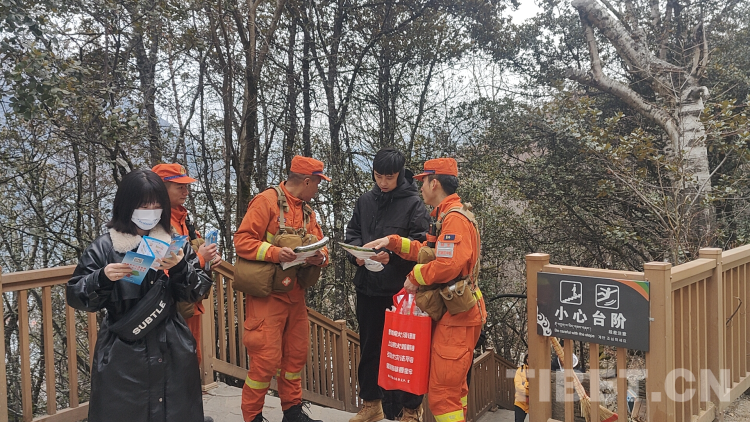 “您好,您在游玩過程中一定要注意安全用火,如發(fā)現(xiàn)火情,請在確保自身安全的前提下?lián)艽?2119報警電話……”森林消防指戰(zhàn)員在人流密集的景區(qū)設(shè)立執(zhí)勤點(diǎn),向來往游客發(fā)放防火常識宣傳手冊,面對面地科普森林防火常識,嚴(yán)格管控野外火源、及時排除火險隱患。