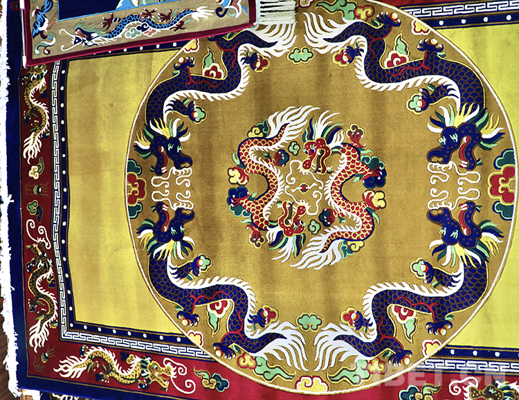 圖為藏毯上的盤(pán)龍和雙龍戲珠 攝影:龍真多吉