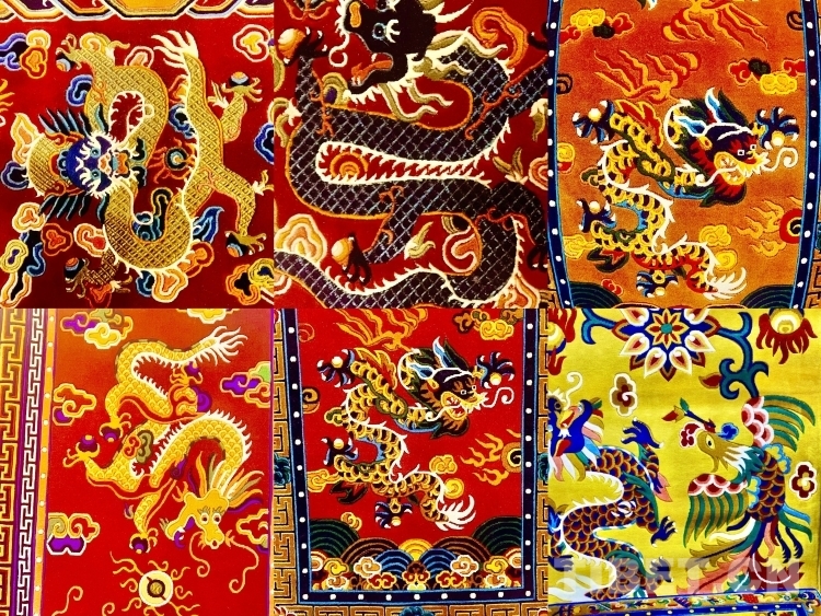 龍作為美好、向上、富貴、勇猛的象征,可以說(shuō)龍文化滲透在我們生活中的各個(gè)角落。藏毯上的這些龍圖案也不例外,它不光是追求審美上的好看,更是有一種敬畏和美好的寓意。
