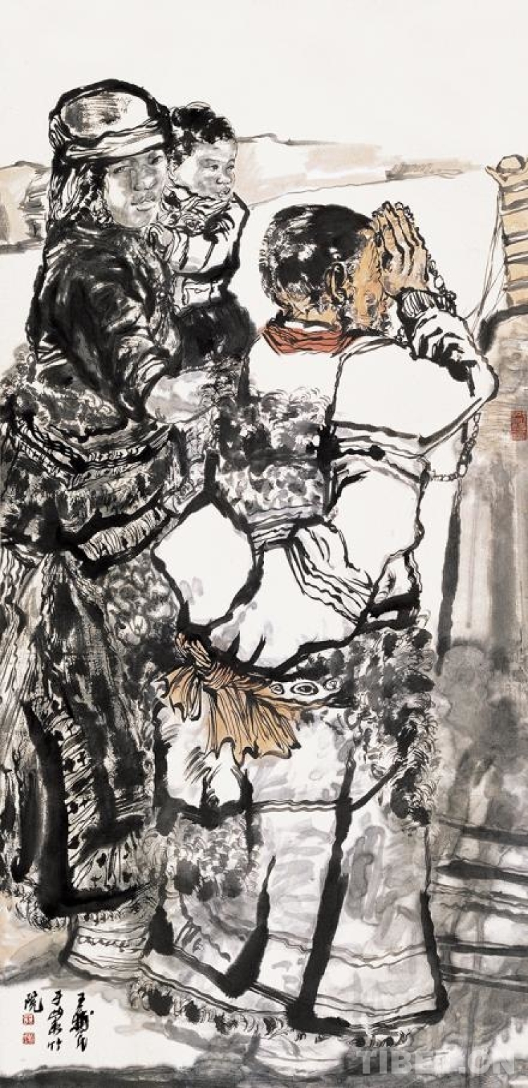 從第九屆全國美術(shù)作品展開始,王輔民主要以藏族題材進行創(chuàng)作,這一主題至今仍是他不斷深入和拓展的方向。王輔民通過自己的努力和實踐,成功地將藏族群眾生活融入中國畫的水墨表現(xiàn)中,展現(xiàn)了他對藝術(shù)的執(zhí)著追求和對藏文化的深厚情感。