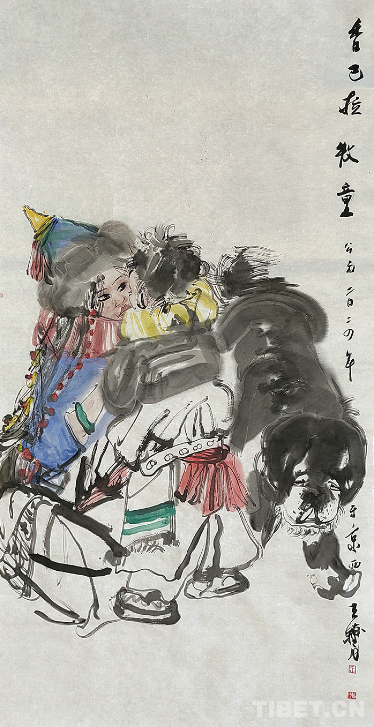 自1978年考入西北師范大學(xué)學(xué)習(xí)中國畫專業(yè),王輔民對表現(xiàn)藏族題材的中國畫充滿興趣。在80年代初,受吳山明老師的影響,王輔民首次接觸到用中國畫水墨形式表現(xiàn)藏族群眾生活的作品,這為他后續(xù)的創(chuàng)作奠定了基礎(chǔ)。1993年調(diào)入蘭州畫院后,他多次到甘肅省甘南州、青海省黃南州和西藏自治區(qū)各地市采風(fēng)寫生,深入體驗當(dāng)?shù)厣?,持續(xù)近30年。這些經(jīng)歷加深了他對西藏文化的了解,也為他找到了藝術(shù)創(chuàng)作的切入點和主題。