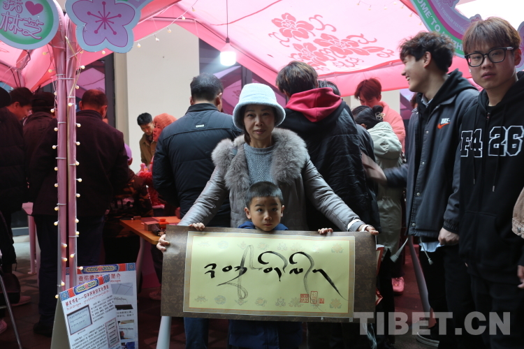 圖為游客收到林芝市職業(yè)技術(shù)學(xué)校學(xué)生的書(shū)法作品。攝影:旦曲