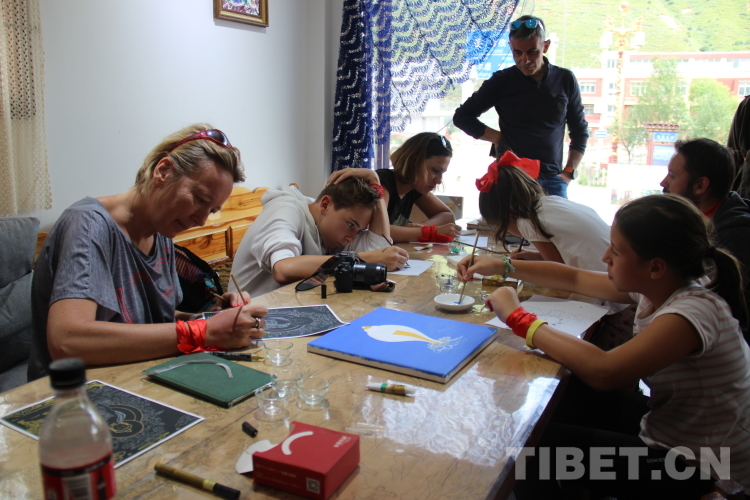 圖為正在爐霍體驗(yàn)郎卡杰唐卡的外國(guó)友人