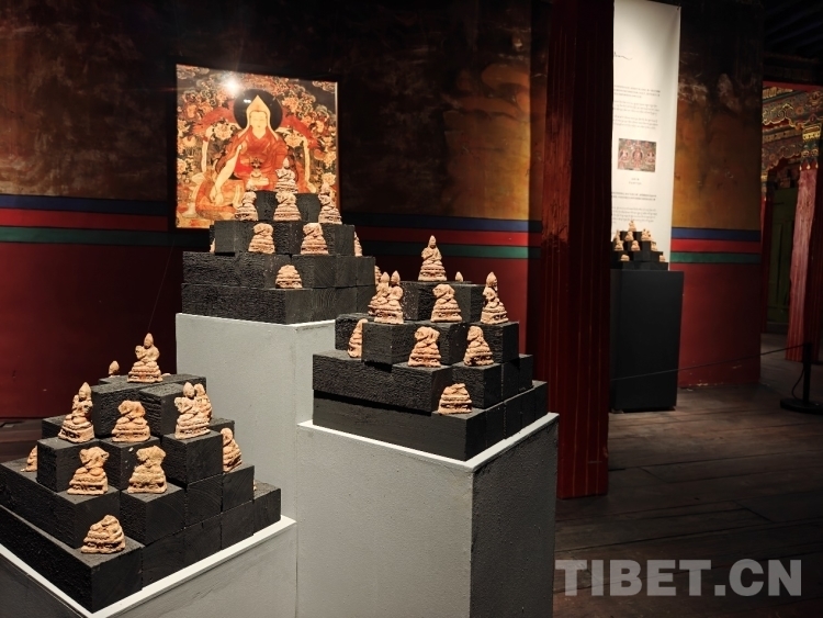 中國美術學院文物保護與修復系副主任王謙是本次展覽的學術主持之一,他表示,完整件吉本崗擦擦的左右肩花各有一尊微型造像,這樣的儀軌和形制在目前已知的西藏擦擦圖像譜系中尚為首例。