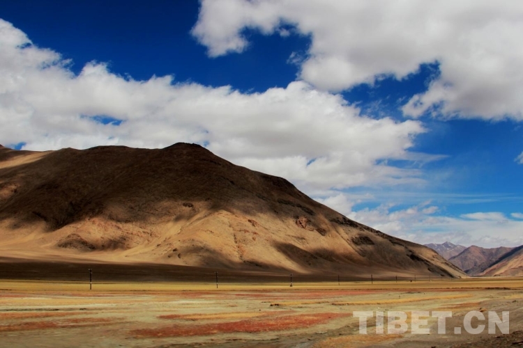 圖為強(qiáng)日照、大風(fēng)中的西藏自治區(qū)阿里地區(qū)日土縣一處山體與草場 攝影:劉莉