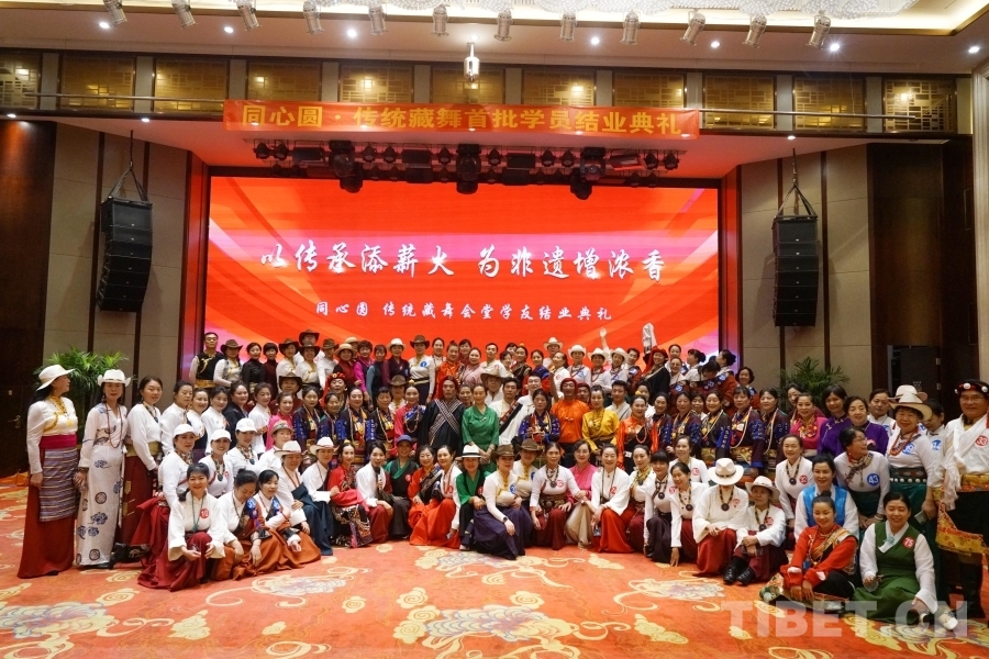 中國西藏網(wǎng)訊 5月9日,由同心圓傳統(tǒng)藏舞會堂舉辦的“為傳承添薪火 為非遺增濃香”傳統(tǒng)藏舞首批學員結業(yè)典禮在陜西西安舉行。22名學友經過一年多的辛勤努力終于迎來了結業(yè)典禮,同時現(xiàn)場還為9名優(yōu)秀學員頒發(fā)推廣人證書。