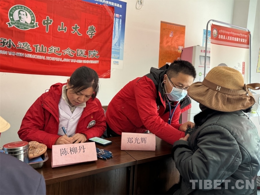 來自廣州中山大學孫逸仙紀念醫(yī)院中醫(yī)科的陳柳丹在義診現(xiàn)場為患者開展了中醫(yī)治療,“今天我們開展的中醫(yī)診療包括穴位貼的貼敷、艾灸治療、平衡火罐之類的,我們想讓洛隆的更多群眾了解急救的知識,了解中藏醫(yī)療法?!?/p>