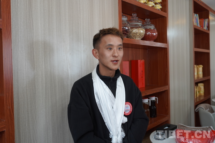 圖為正在接受采訪的格桑花開體驗(yàn)館運(yùn)營負(fù)責(zé)人丹增洛色 攝影:張曉琪