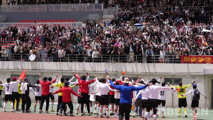 圖為那曲代表隊(duì)和球迷們共同慶祝 攝影:旦曲