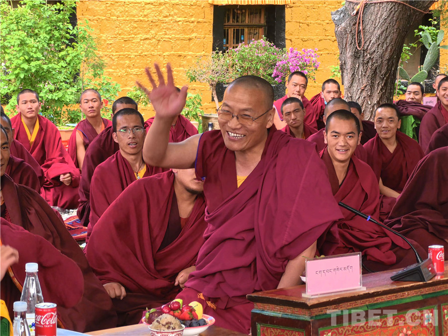 午后的陽光慵懶地灑在辯經(jīng)場,卻擋不住辯經(jīng)的智者們爭先恐后、高舉手臂提問,手臂向下?lián)]落,象征著智慧之劍砍向無知。熱烈的氣氛中,智者們拍手擊掌、獨(dú)立頓足、舞動佛珠、慷慨陳詞、大聲質(zhì)問,仿佛如此便得到了無窮的智慧?;顒蝇F(xiàn)場氣氛十分熱烈、精彩紛呈,交流內(nèi)容充實(shí)飽滿、將所學(xué)與實(shí)際相結(jié)合,充分展現(xiàn)了日常所學(xué)所思所得,閃光思維的碰撞迸發(fā)了智慧的火花,贏得了現(xiàn)場觀眾拍手叫絕,陣陣掌聲。