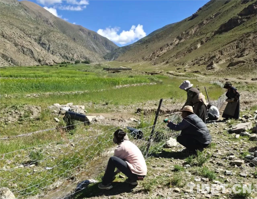 圖為駐村工作隊組織群眾加固當?shù)夭輬龇雷o網(wǎng)