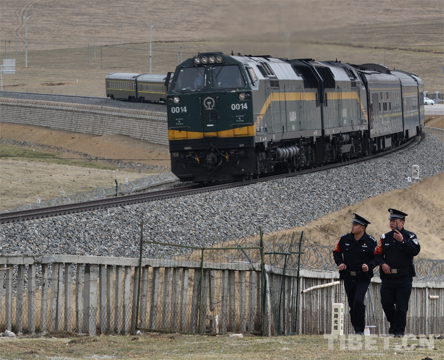 圖為民警跟隨列車,用腳步丈量“天路”