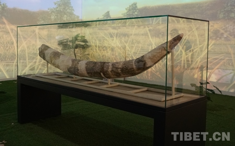 圖為黃河古象展廳中展出的象牙化石 攝影:周晴晴