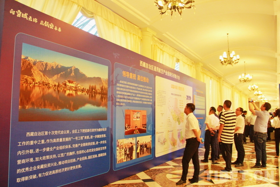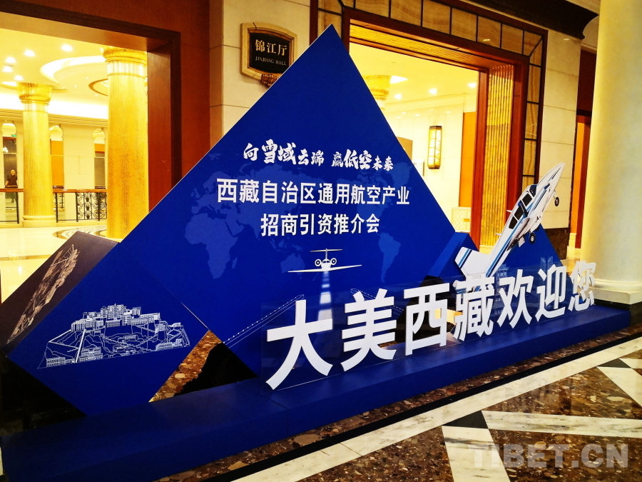 圖為西藏自治區(qū)通用航空產(chǎn)業(yè)招商引資推介會現(xiàn)場設(shè)置的展板 攝影:劉莉