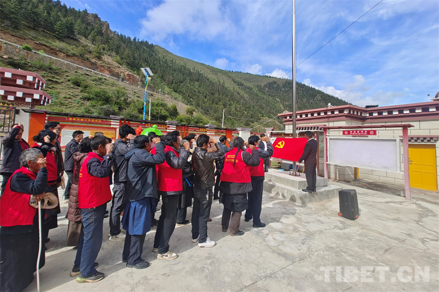 圖為洛隆縣中亦鄉(xiāng)嘴村的黨員重溫入黨誓詞的現(xiàn)場