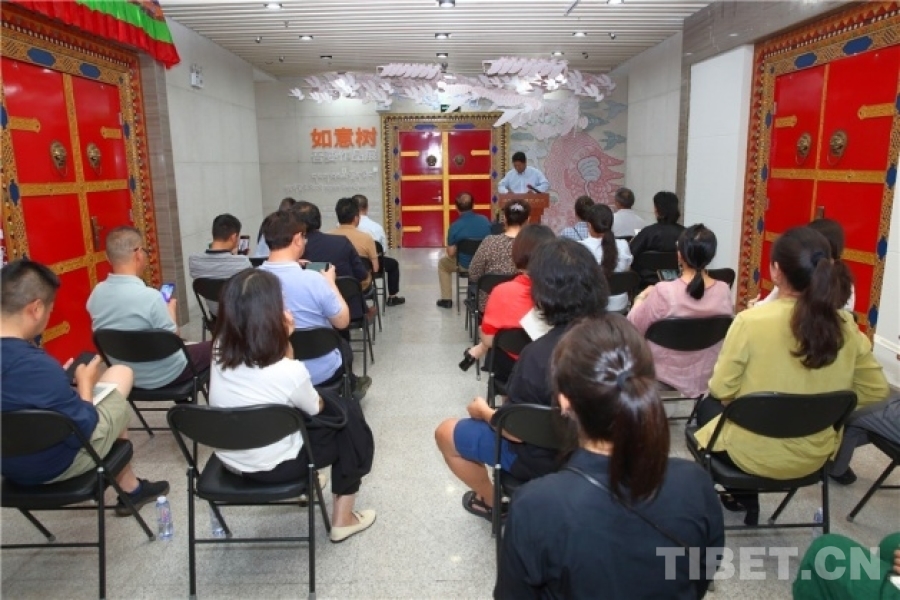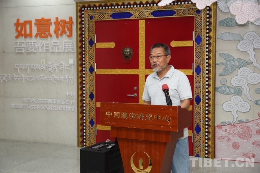 中國(guó)西藏網(wǎng)訊 7月5日,由北京市民族宗教事務(wù)委員會(huì)指導(dǎo)、中國(guó)藏學(xué)研究中心西藏文化博物館主辦的“如意樹——吾要作品展”在京開幕。中國(guó)藏學(xué)研究中心有關(guān)負(fù)責(zé)人和專家學(xué)者、北京市民族宗教事務(wù)委員會(huì)有關(guān)負(fù)責(zé)人、書籍設(shè)計(jì)師吾要及北京藝術(shù)界人士等60余人出席開幕式。