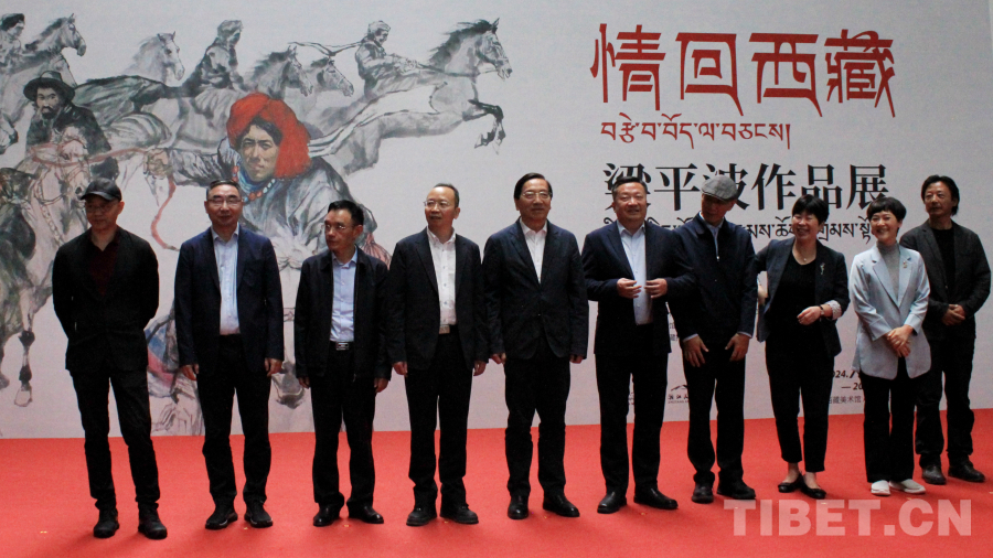 中國西藏網(wǎng)訊 7月8日上午,由浙江省委宣傳部、西藏自治區(qū)黨委宣傳部指導(dǎo),浙江省文化廣電和旅游廳、西藏自治區(qū)文學(xué)藝術(shù)界聯(lián)合會主辦,浙江美術(shù)館、西藏美術(shù)館承辦,浙江省援藏指揮部支持的“情回西藏——梁平波作品展”在西藏美術(shù)館開幕。浙江省委宣傳部常務(wù)副部長來穎杰,西藏自治區(qū)黨委宣傳部常務(wù)副部長、西藏日報社黨委書記廖懇,浙江省援藏指揮部黨委書記、指揮長董旭斌,西藏自治區(qū)黨委宣傳部副部長普布,西藏自治區(qū)文聯(lián)黨組書記、副主席段勝前,浙江省文化廣電和旅游廳黨組成員、副廳長李新芳等相關(guān)領(lǐng)導(dǎo)出席開幕式,西藏自治區(qū)文藝界人士和會員代表約200人參加。西藏自治區(qū)文聯(lián)黨組成員、副主席,第八屆魯迅文學(xué)獎獲得者陳人杰主持開幕式。