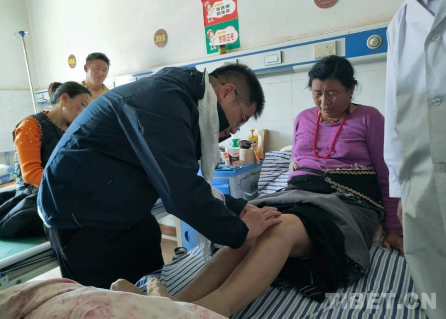 圖為北京大學(xué)人民醫(yī)院骨關(guān)節(jié)科學(xué)科助理,骨關(guān)節(jié)科黨支部書記李虎主任醫(yī)師在甘孜縣中藏醫(yī)院查看患者情況 攝影:朱鈺慧