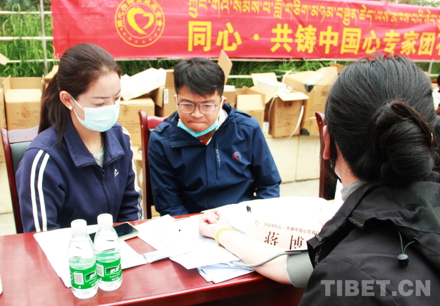 圖為2024“同心·共鑄中國心”甘孜行大型公益活動石渠縣義診現(xiàn)場,中國人民解放軍總醫(yī)院第一醫(yī)學中心心血管內(nèi)科副主任醫(yī)師蔣博正在觀察患者血壓 攝影:劉莉