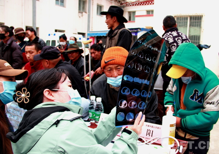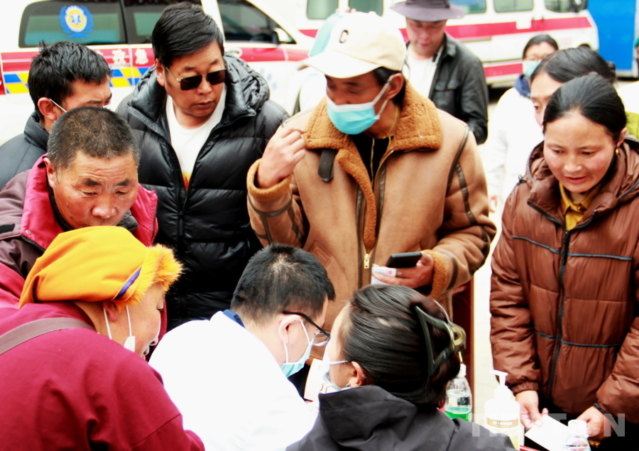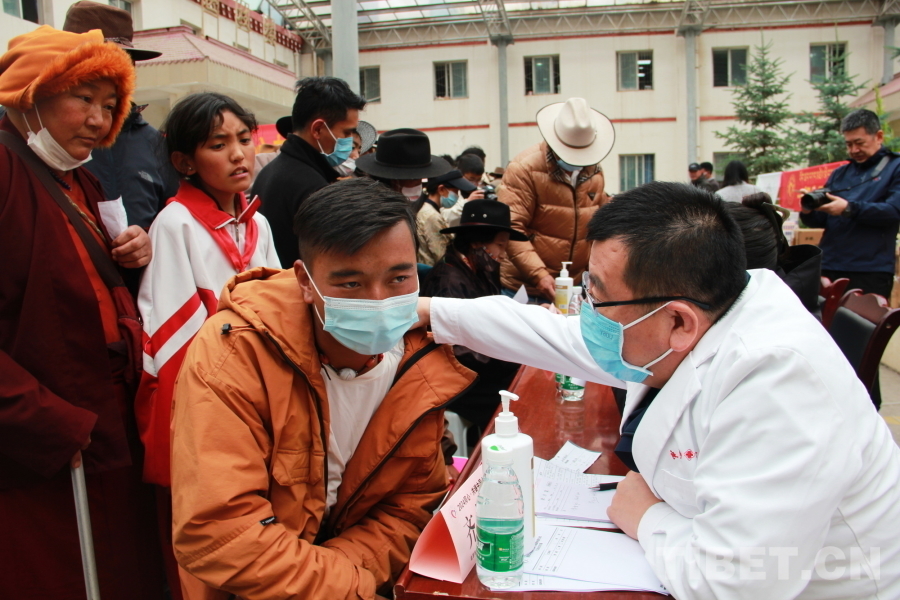 由于石渠縣海拔較高,參加義診的醫(yī)療專家們普遍發(fā)生頭暈、心悸等高原反應,有的血氧濃度甚至不到70%。在前往義診現(xiàn)場的車上還吸著氧的他們,見到這么多群眾排隊候診,顧不上身體不適,迅速投入到了診療工作中。