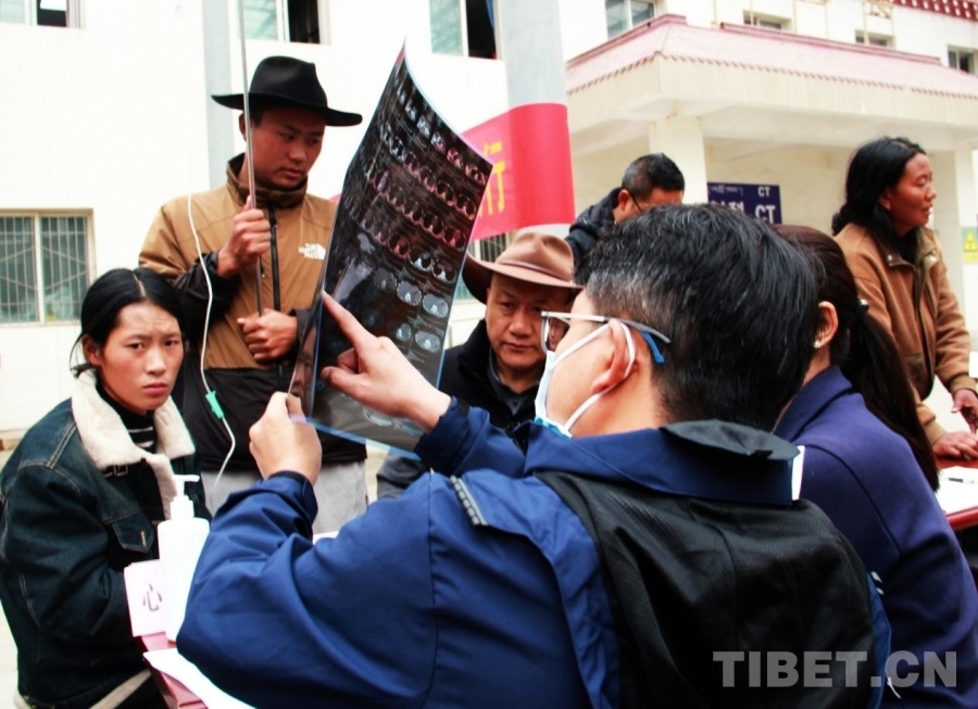 圖為2024“同心·共鑄中國心”甘孜行大型公益活動石渠縣義診現(xiàn)場,中國人民解放軍總醫(yī)院第一醫(yī)學中心骨科副主任醫(yī)師高陽正在查看患者帶來的片子 攝影:劉莉
