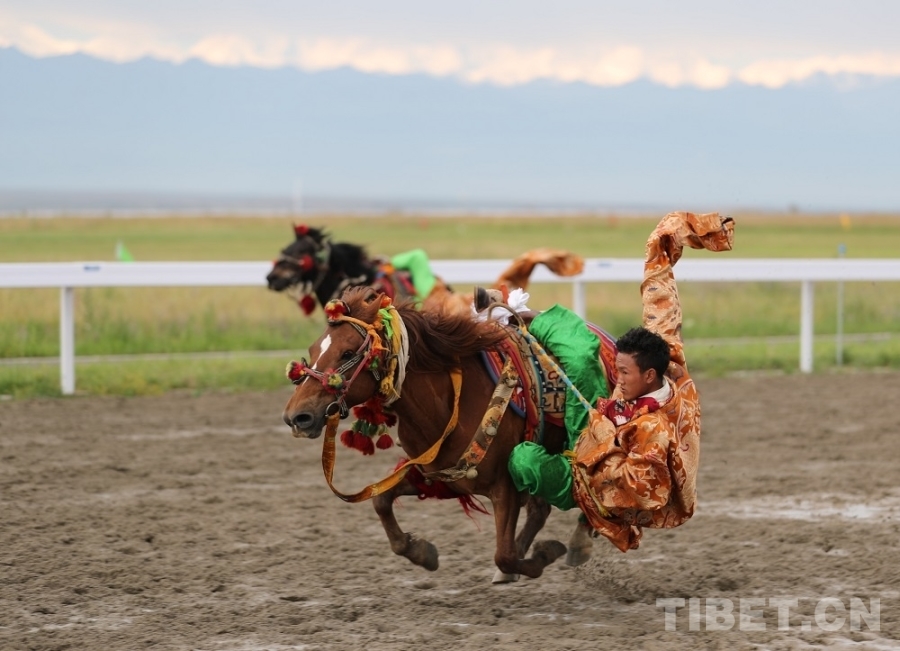 圖為康巴馬術(shù)項目“跑馬懸體” 攝影:達哇才讓