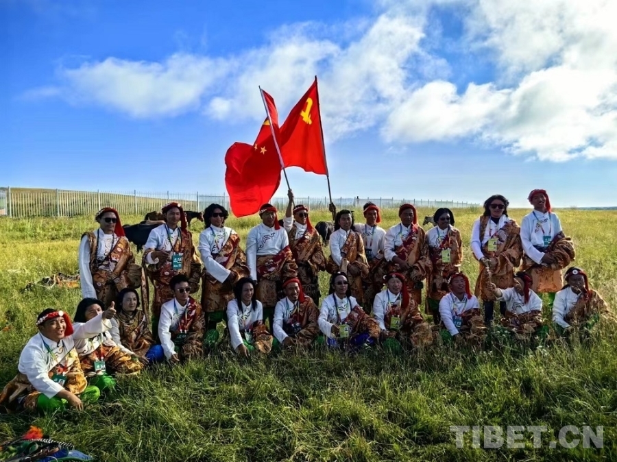 圖為青海省代表團在草原上獻歌《再唱山歌給黨聽》 攝影:王培宇