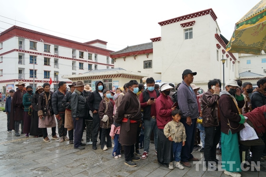 圖為7月9日,群眾在白玉縣昌臺中心衛(wèi)生院義診點(diǎn)排隊(duì)等待掛號 攝影:周晴晴