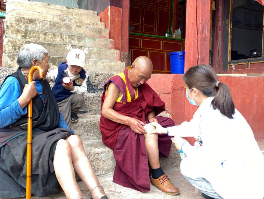 圖為同心公益志愿者醫(yī)生為白利寺僧人進(jìn)行義診活動(dòng) 攝影:格桑