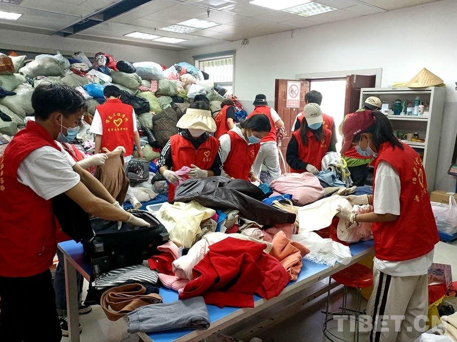 圖為古如次仁參加衣物分揀志愿服務活動
