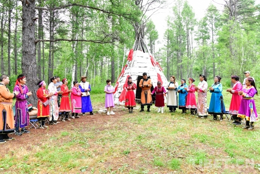 圖為鄂倫春族人民盛裝歡迎遠方的來賓