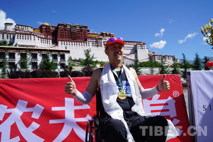 布達(dá)拉宮終點(diǎn)處人頭攢動(dòng),工作人員為每一位完賽選手獻(xiàn)上哈達(dá)、掛上獎(jiǎng)牌,和選手們一起享受拉薩半程馬拉松挑戰(zhàn)完成的滿(mǎn)足與快樂(lè)。來(lái)自山東濟(jì)寧的任先振是本屆拉薩半程馬拉松唯一一位輪椅半程選手,他告訴記者,這一路他不僅沒(méi)有高反,且因?yàn)槭亲约簠⒓舆^(guò)最高海拔的半程馬拉松而更加富有激情,在拉薩他感受到了許多來(lái)自藏族同胞的關(guān)心與溫暖,來(lái)到高原前他已經(jīng)報(bào)名了拉薩旅游團(tuán),他要去看看屬于雪域高原的美景。