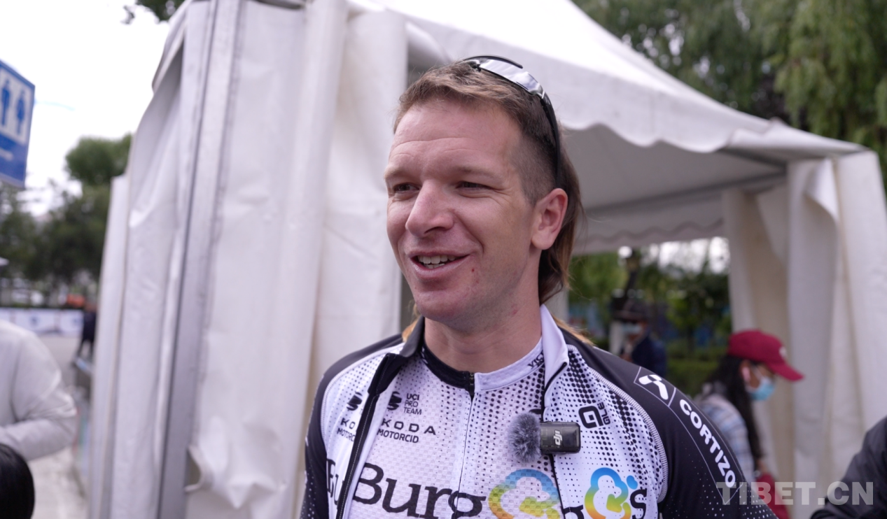 圖為拉薩繞圈賽第二名、來自布爾戈斯·BH職業(yè)隊的GATE Aaron Murray接受中國西藏網(wǎng)的采訪 攝影:德吉卓瑪