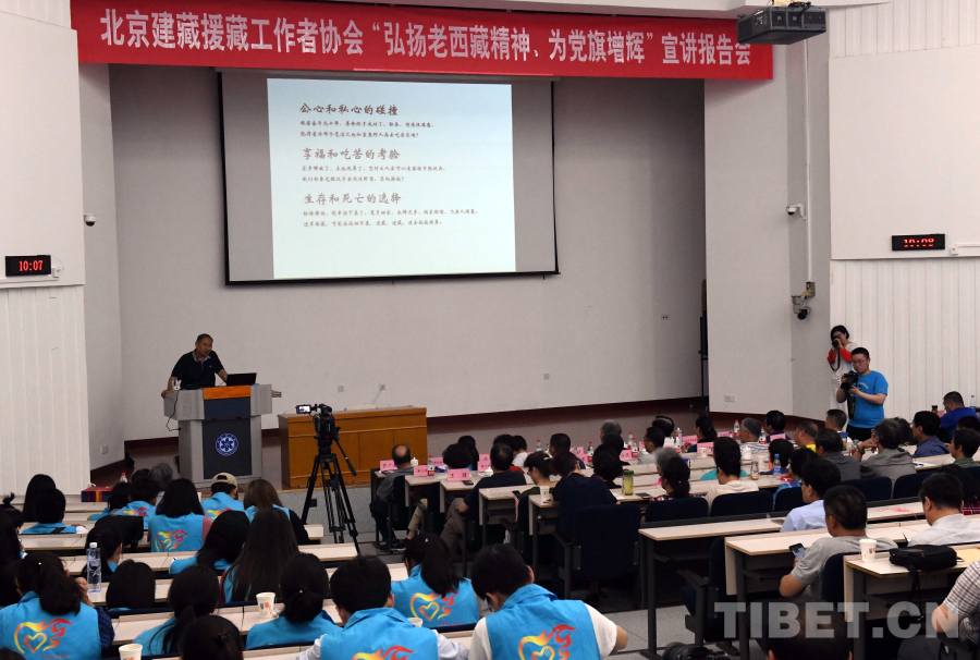 圖為蘆繼兵在協(xié)會(huì)所舉辦的“弘揚(yáng)老西藏精神,為黨旗增輝”宣講報(bào)告會(huì)上作宣講(唐召明2018年5月19日攝)