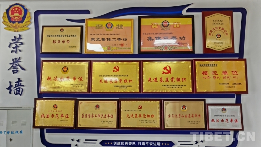 圖為羌納邊境派出所榮譽墻 攝影:馮重霖