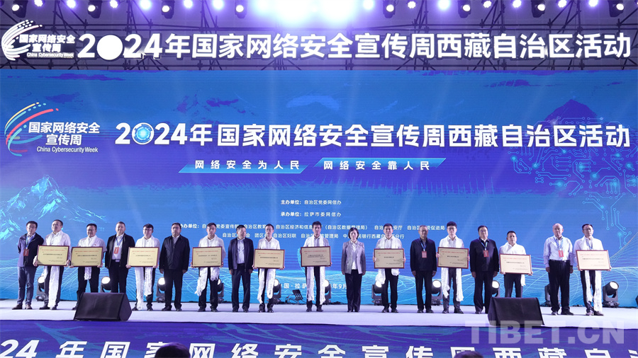 圖為西藏自治區(qū)黨委網信辦聯合國家計算機網絡與信息安全管理中心西藏分中心向西藏自治區(qū)網絡與數據安全技術支撐單位授牌 攝影:德吉卓瑪