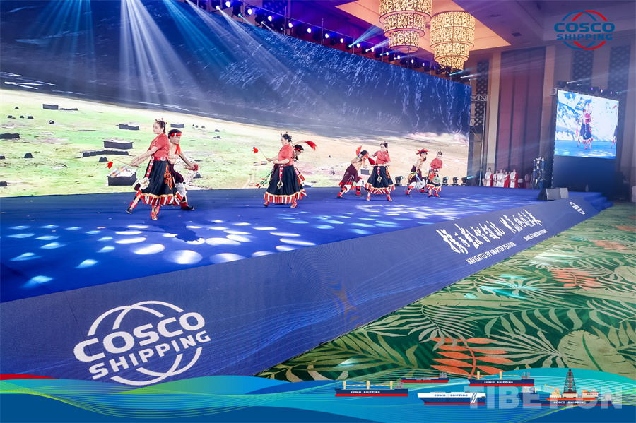 圖為洛隆縣藝術(shù)團在中遠海運特運2024全球合作伙伴大會上精彩亮相
