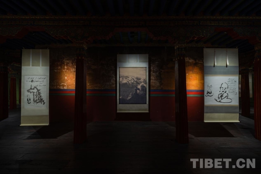 中國西藏網(wǎng)訊 9月22日,當(dāng)代藝術(shù)家徐震的首次西藏個(gè)展“全球包漿,山水靈光”在拉薩吉本崗藝術(shù)中心開展,展出其以全球化語境中的西藏為主題所創(chuàng)作的20余件全新水墨繪畫作品。(中國西藏網(wǎng) 記者/賈華加)