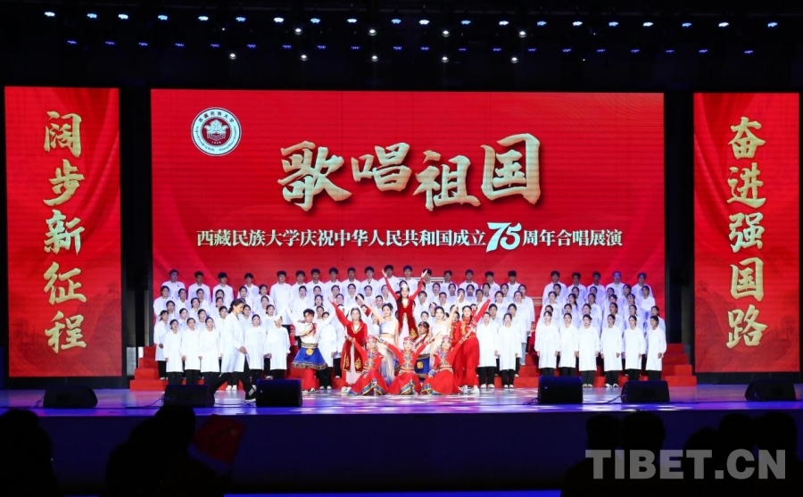 中國(guó)西藏網(wǎng)訊 紅旗獵獵,歌聲嘹亮。在喜迎中華人民共和國(guó)成立75周年之際,9月28日,一場(chǎng)以“歌唱祖國(guó)”為主題的合唱展演在西藏民族大學(xué)文體館舉行。