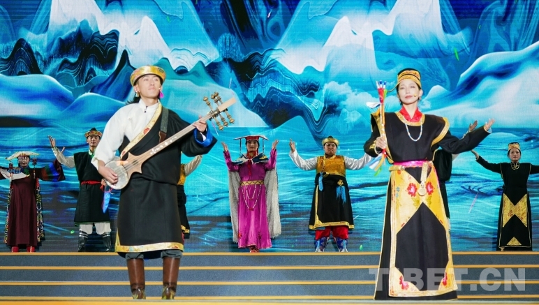 以“妙音入夢”為序,遠古神話為引,演出在央吉瑪的悠揚歌聲中拉開序幕。隨后,“藝承千年”篇章集中展示了國家級非物質文化遺產、西藏的代表性傳統(tǒng)樂器扎念的發(fā)展與傳播脈絡,阿里、日喀則、拉薩、林芝等地的扎念彈唱藝術一一登上舞臺。