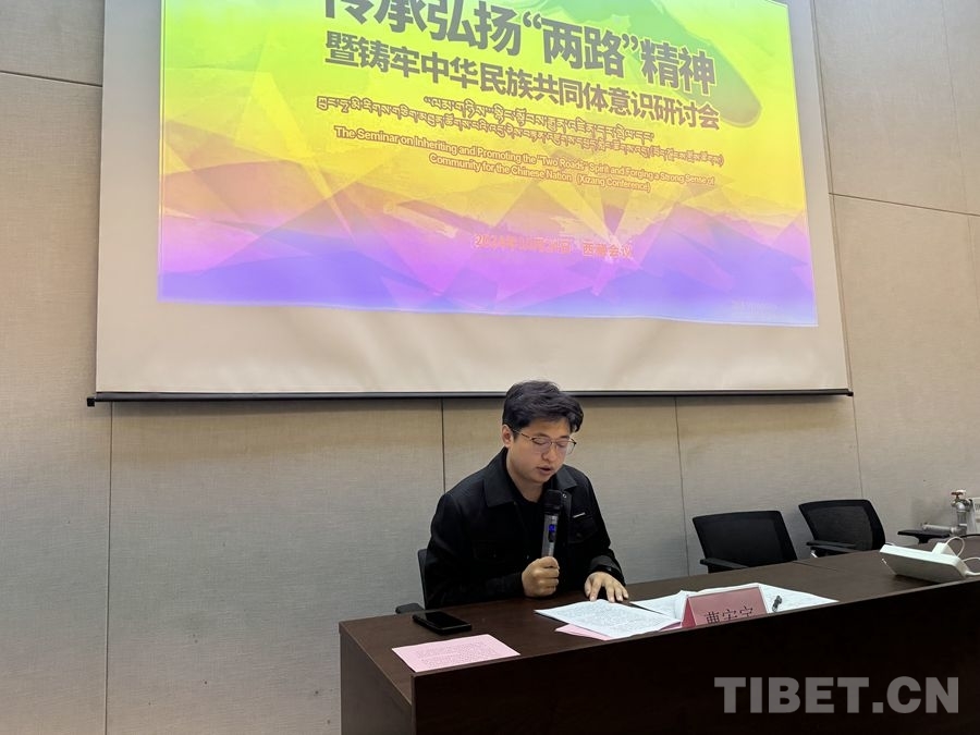 青海民族大學(xué)民族學(xué)與社會(huì)學(xué)學(xué)院教授陳文祥,以《青藏高原制宜鑄牢中華民族共同體意識(shí)的重要抓手》為題,談到“兩路”精神作為形成于青藏高原的精神豐碑,完全可以作為我們鑄牢中華民族共同體意識(shí)的抓手之一。