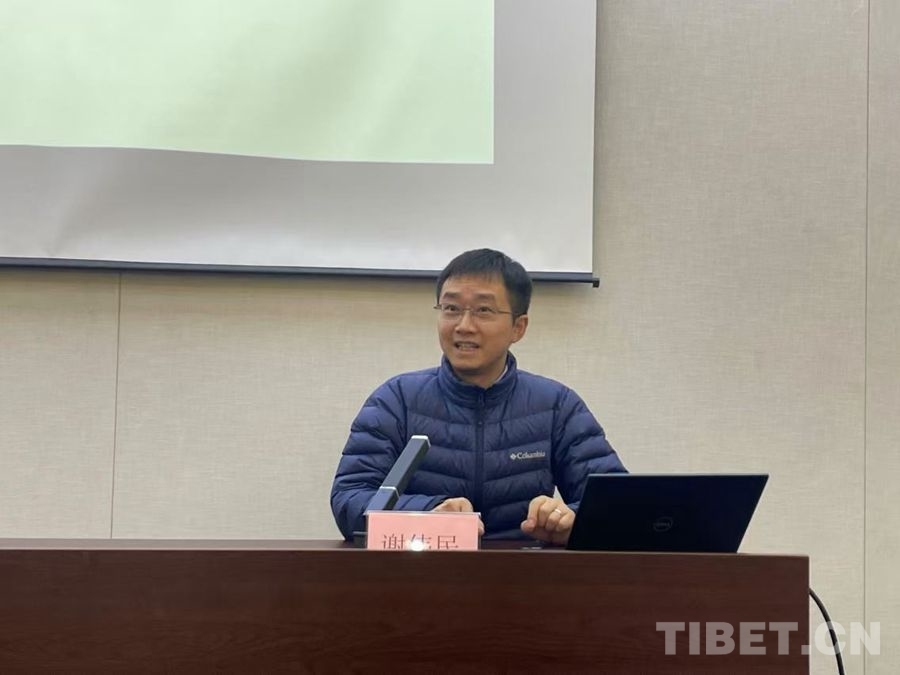 圖為何勁在作交流發(fā)言 攝影:噶哇扎西
